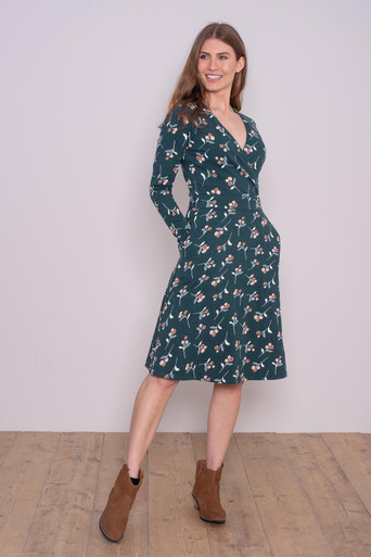 Shop Affordable Fashion by VENUS. Cotton Wrap Dress Floral Karma East Australia This classic wrap dress has cap sleeves has a tie that wraps just under the bust and ties at the side falls in an A-line and sits just over the knee. Made with soft cotton fabric this wrap style is very flattering on all body types.